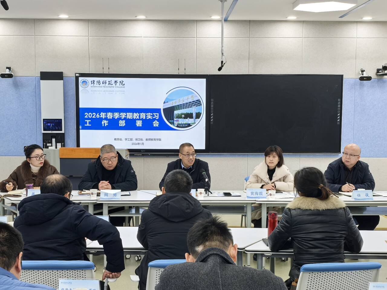 为保障2026年春季学期教育实习工作规范、有序开展,1月19日下午,学校于笃行楼524教室召开工作部署会。教务处、学生工作部、保卫处相关负责人,各二级学院分管副院长、各实习带队教师、教师教育学院负责人及相关工作人员参加会议。会议由教师教育学院院长任俊教授主持。